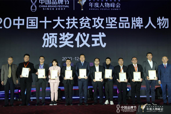 全国人大代表、中华思源工程扶贫基金会副理事长兼秘书长李晓林,(左六)中国智慧工程研究会优秀和杰出人才发展委员会常委、甘肃冰雪果业公司总经理闫国玉(左四),中国农村青年致富带头人协会副会长、中国智慧工程研究会优秀和杰出人才发展委员会副秘书长、内蒙古东达蒙古王集团总裁赵智强(右三),中国智慧工程研究会优秀和杰出人才发展委员会执委、黑龙江省和粮农业集团董事长张芳(左四),甘肃中天羊业股份公司董事长陈耀祥(右六),中国智慧工程研究会优秀和杰出人才发展委员常务副秘书长、四川省大英县鑫燕畜禽专业合作社理事长吴艳等10位同志荣“2020中国十大扶贫攻坚品牌人物”荣誉称号。