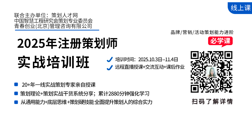 (详细的课程大纲请联系报名老师,报名成功后还有策划人成长礼包)