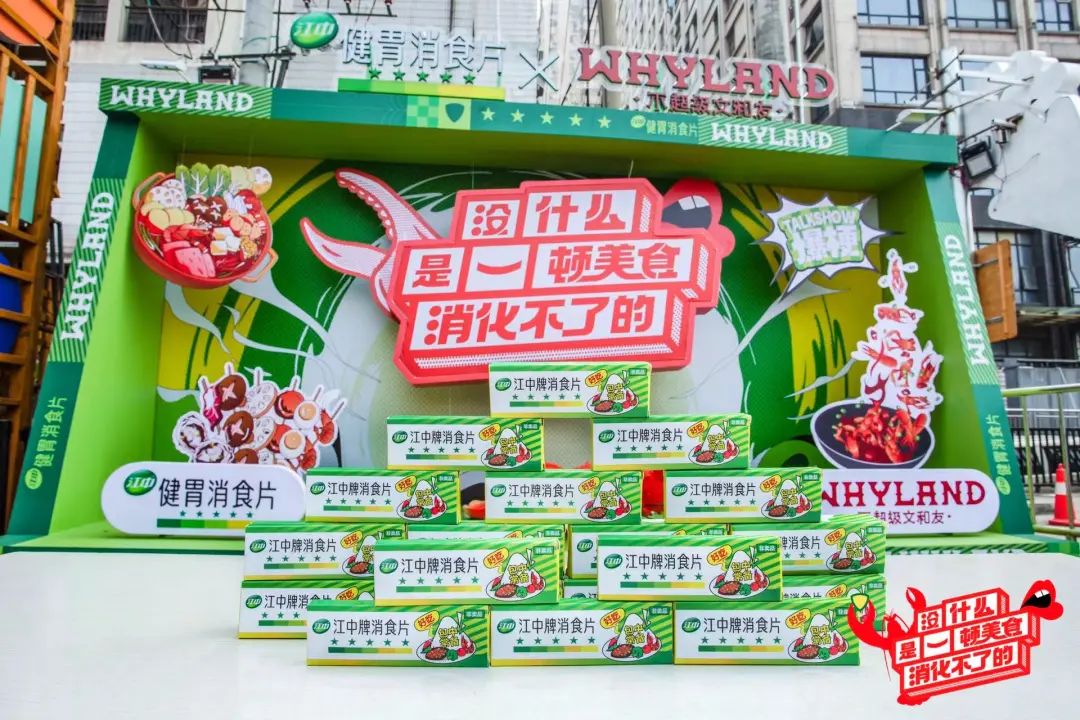 2019年,江中与美团推出“大国美好食代”项目,与成都上千家餐厅合作,推出“餐厅助消化服务”,免费体验消食片;2022年,江中牌健胃消食片联合夜市品牌“不超级文和友”,在长沙打造了主题为“没什么是一顿美食消化不了的”的跨界营销活动,有效拉近了江中品牌与年轻受众广大沟通距离,触达潜在目标消费群体。